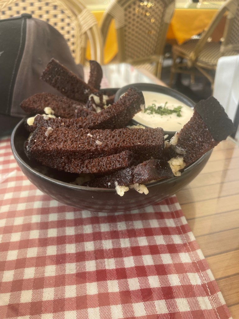 Just a quick heads up I was not aware of this before I came but if you decide to order garlic bread you will be given the Estonian version of it. Personally I was not a fan of it but why not give it a try when you visit.